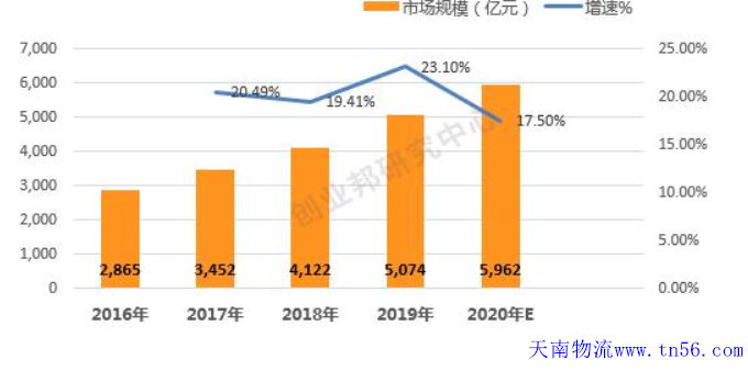 零擔物流:零擔物流是一種“拼車”的運輸方式,承運企業把運往同一個地方的多家客戶的貨物集零為整,待到達目標地點后再分發至各個客戶。受益于制造業和商貿業前置倉和渠道下沉的影響,大宗貨運需求大幅下降,小批量、多批次、高時效的零擔快運需求呈增長趨勢。中國外運與中國物流與采購聯合會攜手發布《新時代中國智慧物流發展報告》,報告中指出,2019年中國的零擔物流市場規模為1.62萬億元,同比增長23%。
