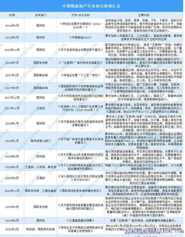 2020年中國物流地產行業政策匯總